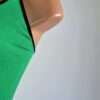 Plain contrast lettuce trim crop top in black, white, pink, green.