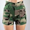 High waisted green camouflage paper bag shorts.