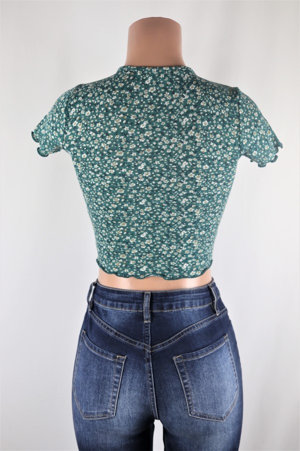 Jackie Crop Top Short sleeve lettuce trim round neck floral crop top. 97% Polyester 3% Spandex Weight N/A Size L, M, S Reviews There are no reviews yet. Be the first to review “Jackie Crop Top”Cancel ReplyYour email address will not be published. Required fields are marked *Your rating * Rate… Perfect Good Average Not that bad Very poor Name *Email *Your review * Save my name, email, and website in this browser for the next time I comment. Submit