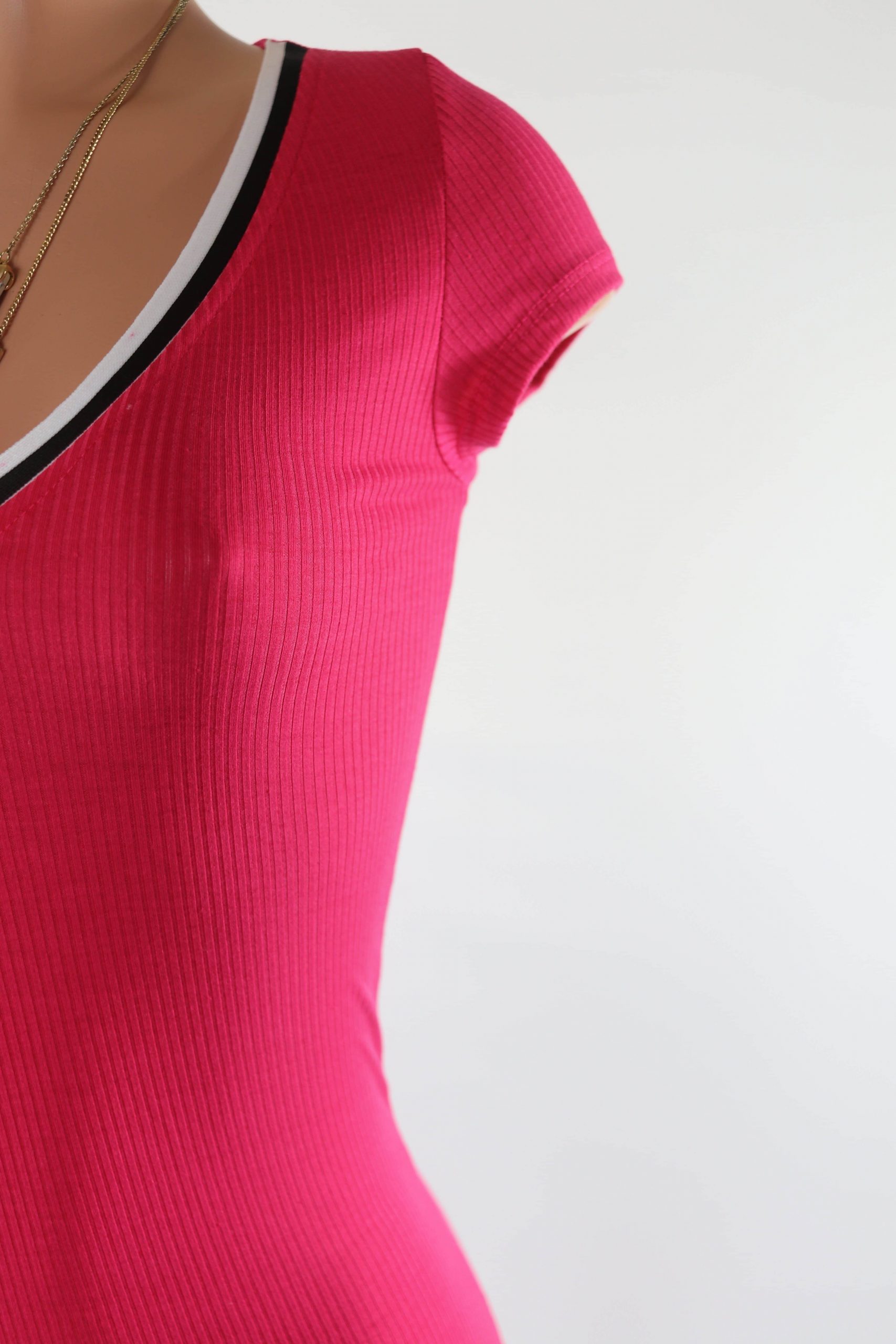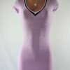 Ribbed Lavender and fuchsia striped bodycon dress.