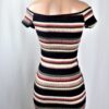 Multi color off the shoulder short sleeve stripe mini dress with button detail.