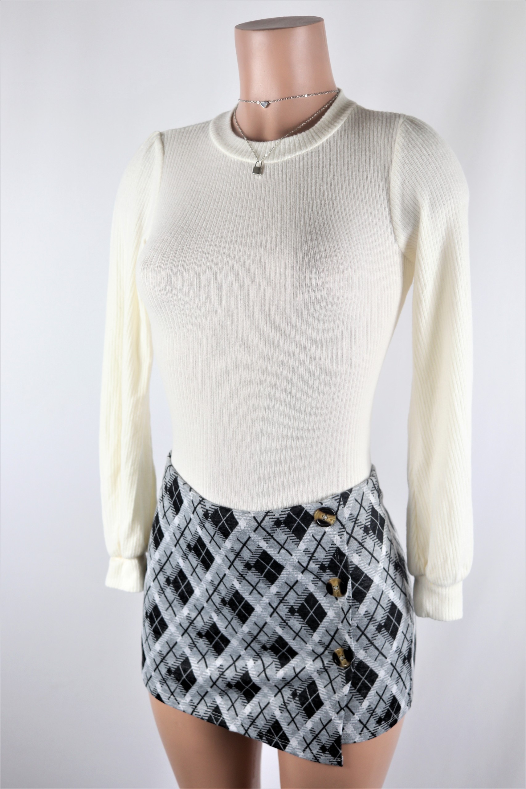 Mid-High waisted black and white plaid argyle skort.