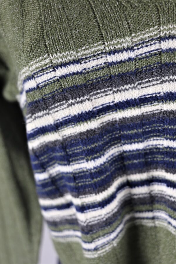Long sleeve ivory v neck green stripe colorblock lightweight crop sweater top.